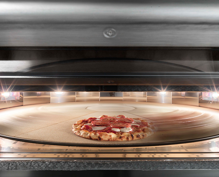 - Поверхность для выпечки из кордиеритового кирпича установлена на вращающуюся раму