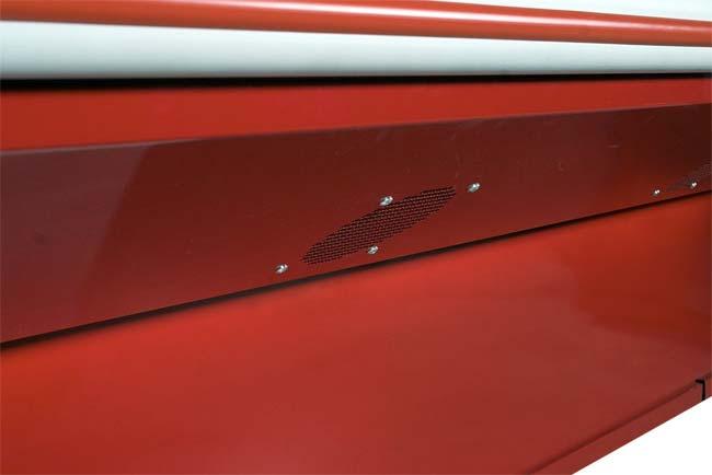 В стандарте витрина имеет гнутое закалённое стекло поднимаемое вверх на гидродвигателях.