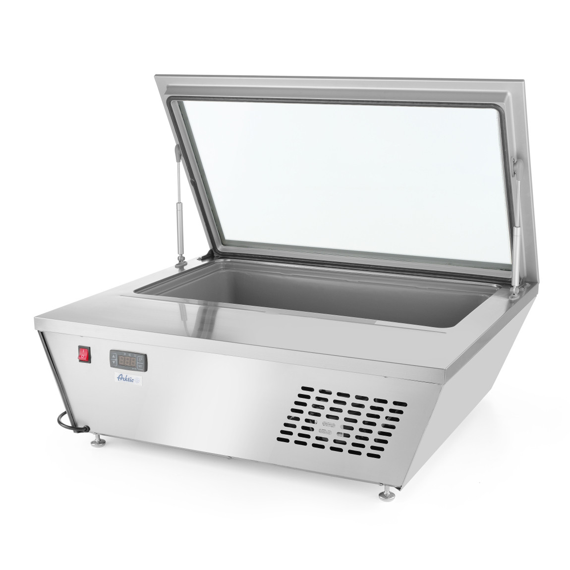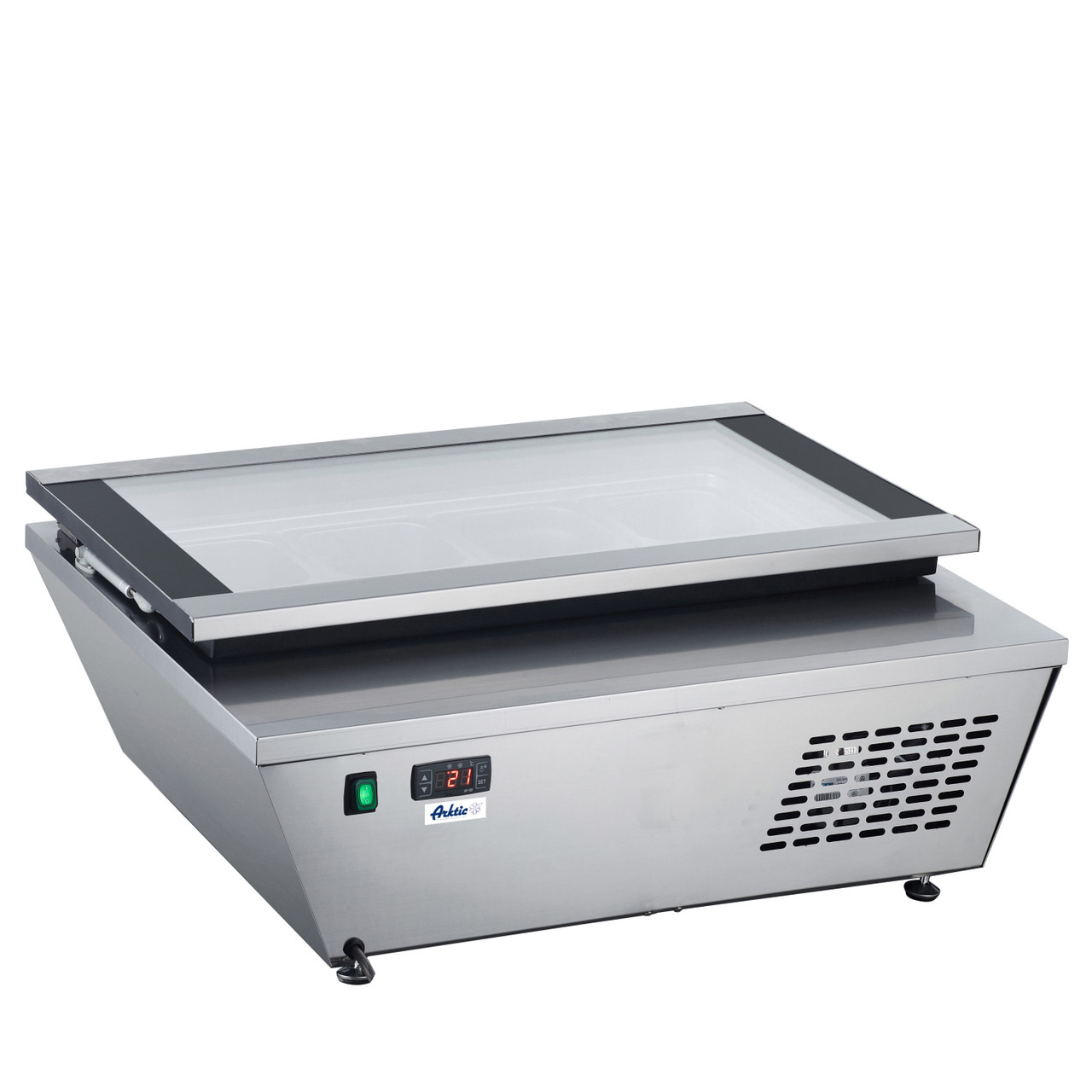 Настольная морозильная витрина Arktic предназначена для презентации и сервировки продуктов. Поддерживает низкую температуру до 4 часов. Не подходит для длительного хранения замороженных продуктов.