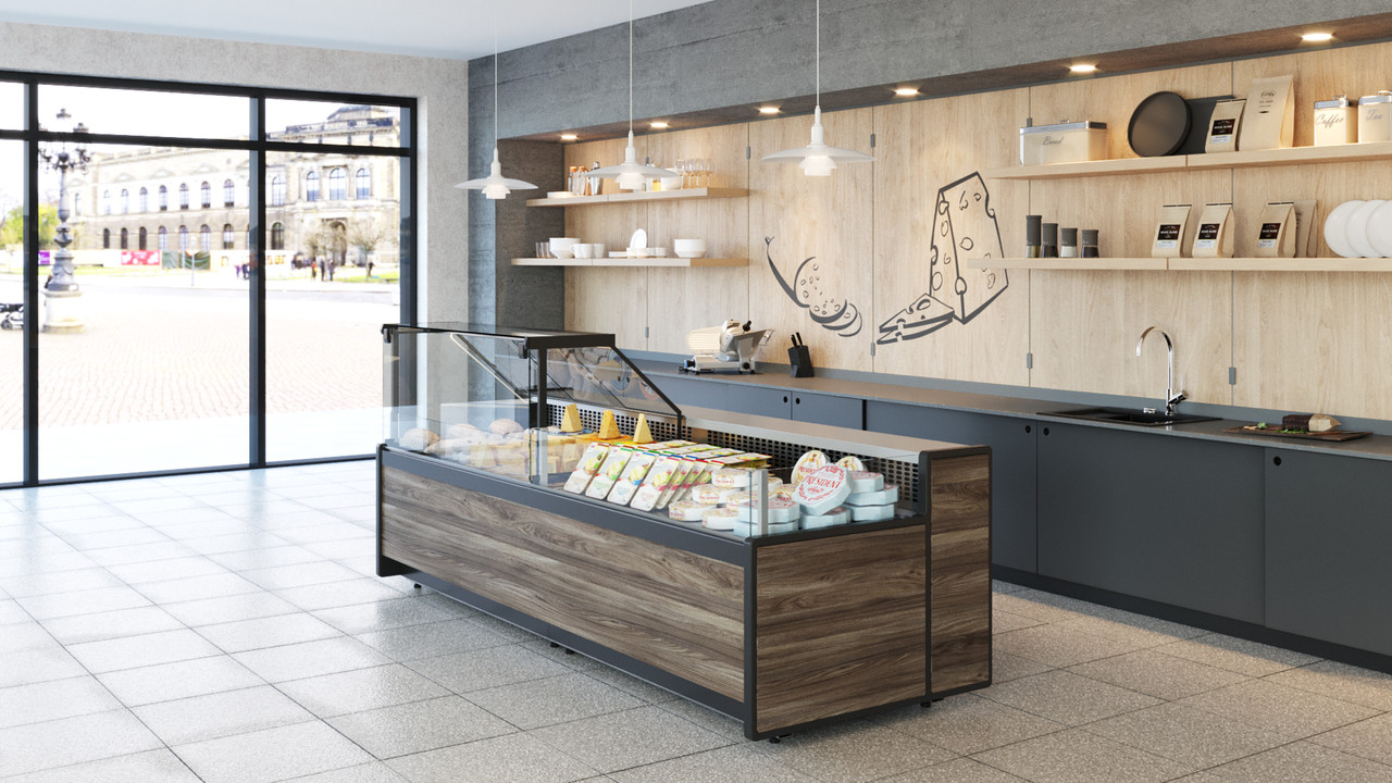 Гастрономические витрины BAVARIA 3 предназначены для мяса, сыра, рыбы, молочных продуктов, пресервов, замороженных полуфабрикатов, кондитерских изделий, выпечки.