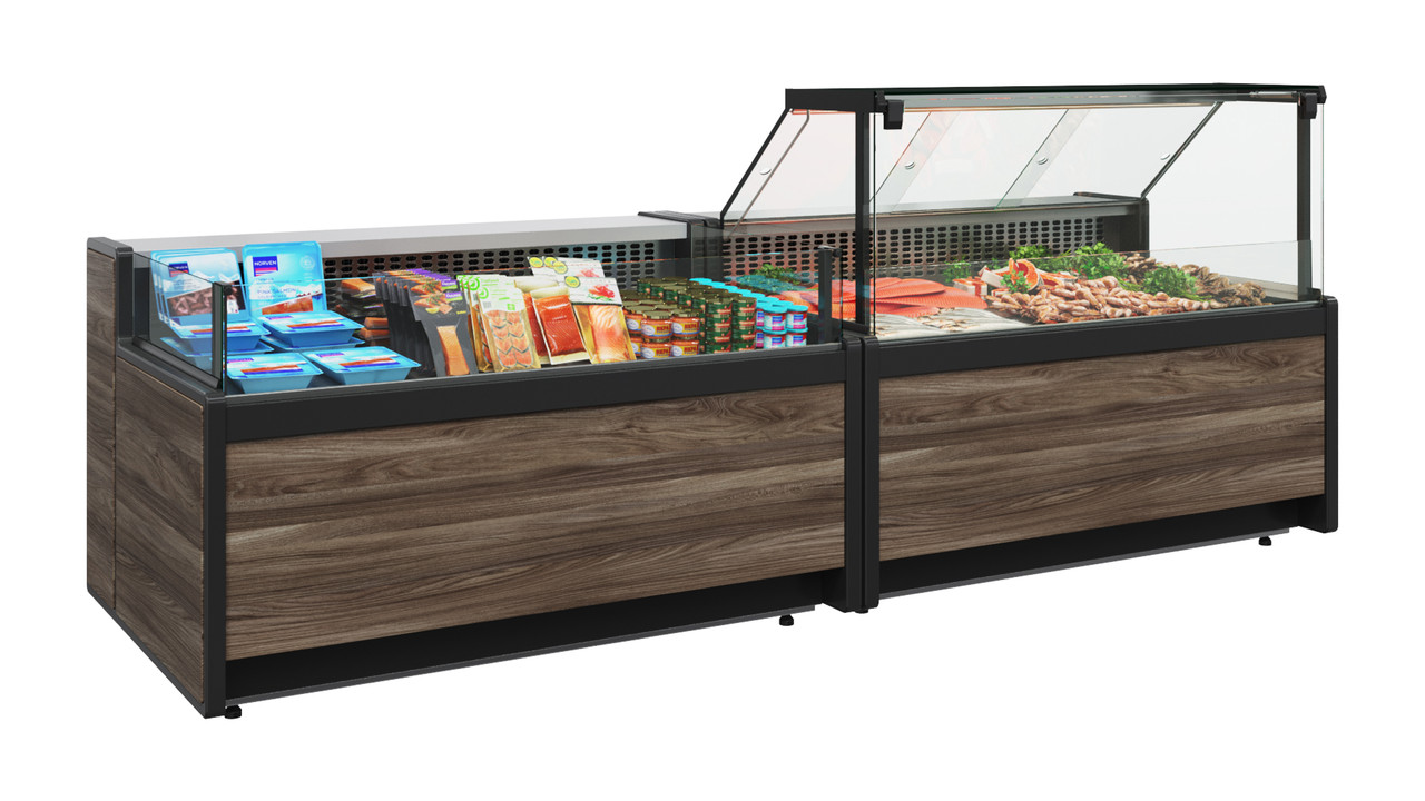 Гастрономические витрины BAVARIA 3 предназначены для мяса, сыра, рыбы, молочных продуктов, пресервов, замороженных полуфабрикатов, кондитерских изделий, выпечки.