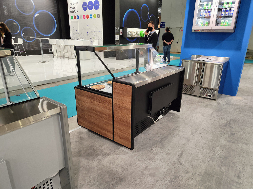 - Экспозиционная поверхность, столешница из шлифованной нержавеющей стали