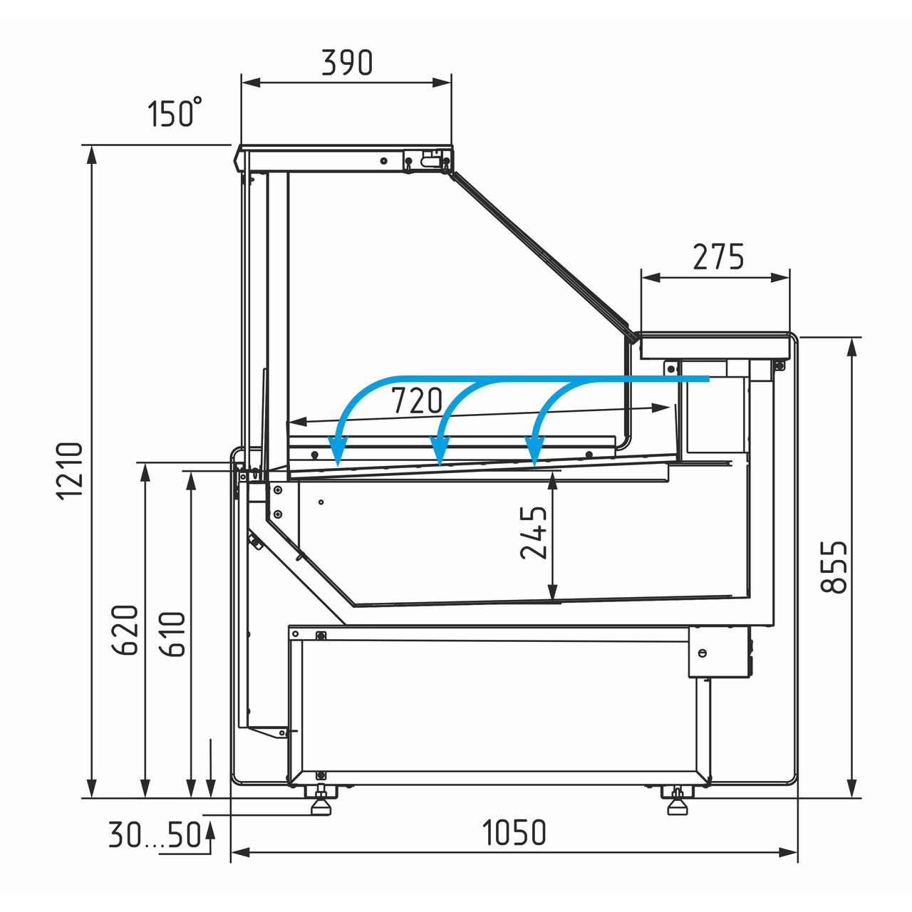 Гастрономические витрины BAVARIA 3 предназначены для мяса, сыра, рыбы, молочных продуктов, пресервов, замороженных полуфабрикатов, кондитерских изделий, выпечки.