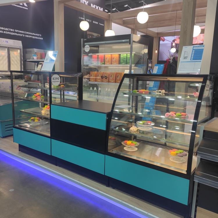 - Эффективная демонстрация — превосходная обзорность выкладки, акцент на кондитерских изделиях