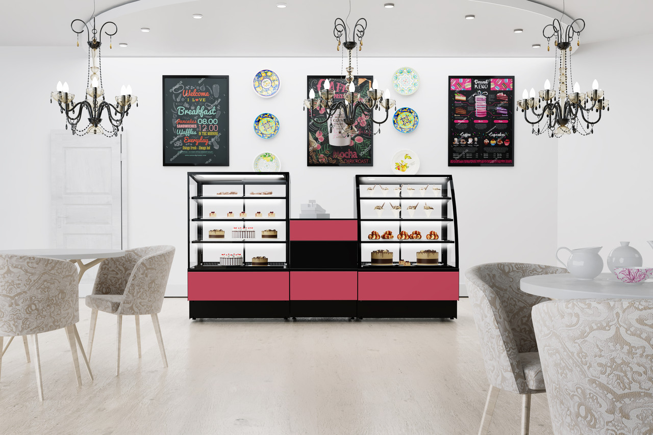 - Эффективная демонстрация — превосходная обзорность выкладки, акцент на кондитерских изделиях