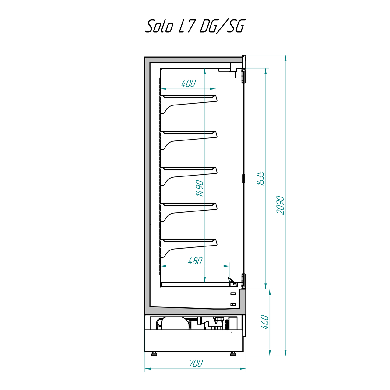 Различные типоразмеры SOLO DG L7 (1250, 1500, 1875 и 2500 мм) делают её универсальной для магазинов различных площадей — от небольших магазинов формата "у дома" или "экспресс" до сетевых гипермаркетов. Компактное исполнение холодильной горки — глубина 700 мм — позволяет организовать эргономичную расстановку оборудования в торговом зале.