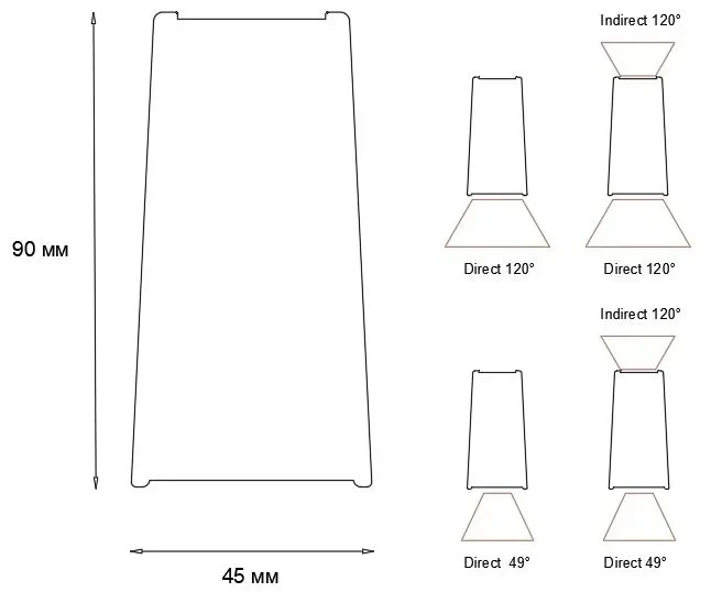 - ширина 45 мм, высота 90 мм
