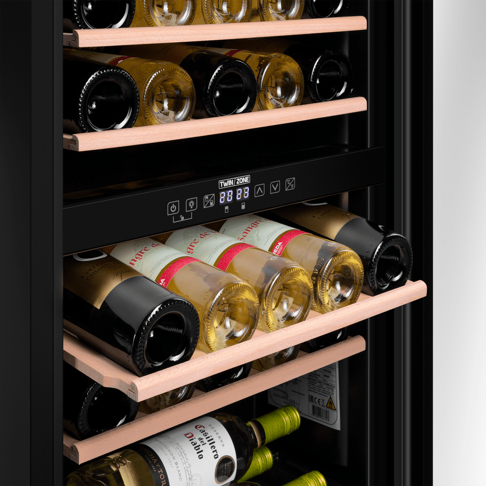Шкаф имеет две зоны, для каждой из которых можно задать свой режим охлаждения в диапазоне от 5 до 22 °C.