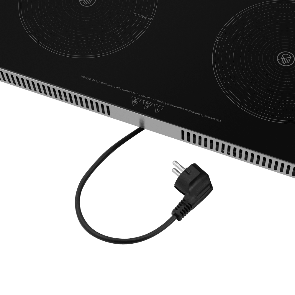 Многофункциональная плита EVCE.F592-BK мощностью 4000 Вт. Технология Hi-Light обеспечивает быстрый нагрев поверхности по сравнению с обычными электрическими моделями.