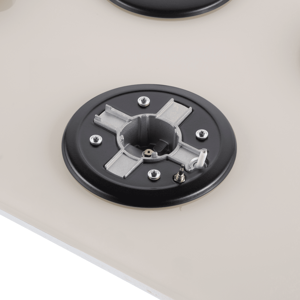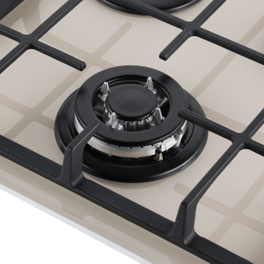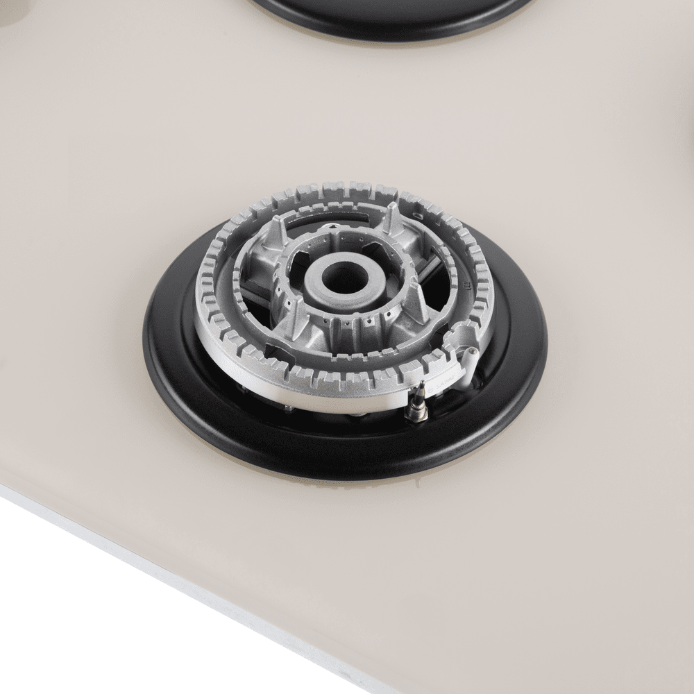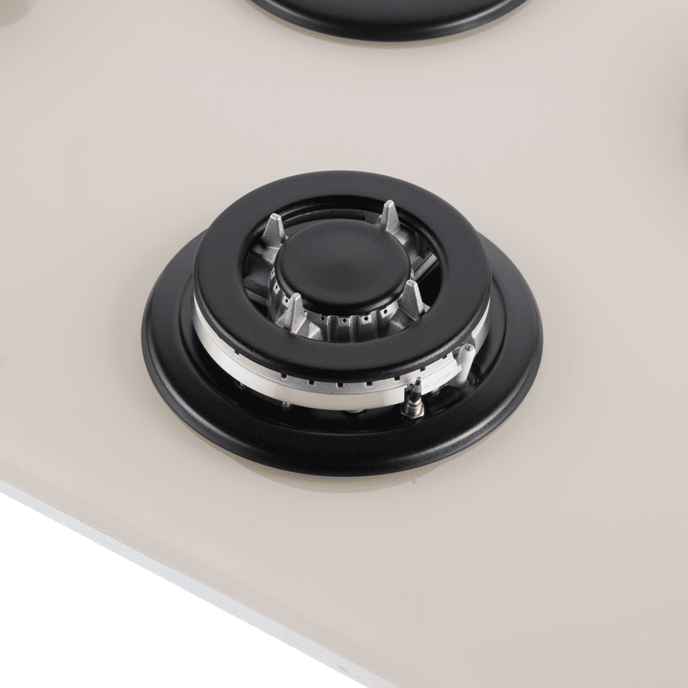 Встраиваемая трехконфорочная газовая варочная панель MAUNFELD EGHG.43.33CBG/G выполненаиз закаленного стекла бежевого цвета с чугунной решеткой. Благодаря своей массивности, решетки обладают устойчивостью, не скользят под посудой, не гнутся под весом кастрюль. Варочная панель с механическим управлением с помощью ручек из высокопрочного термостойкого пластика.