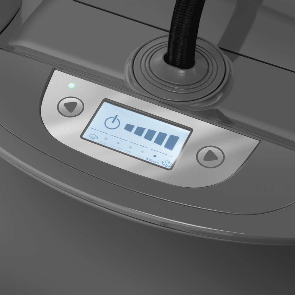 Инновационная технология двойного нагрева обеспечивает мгновенное создание пара в основании и его подачу через сопло отпаривателя; с помощью мощной подачи и глубокого проникновения пара получаются превосходные результаты без мокрых пятен.